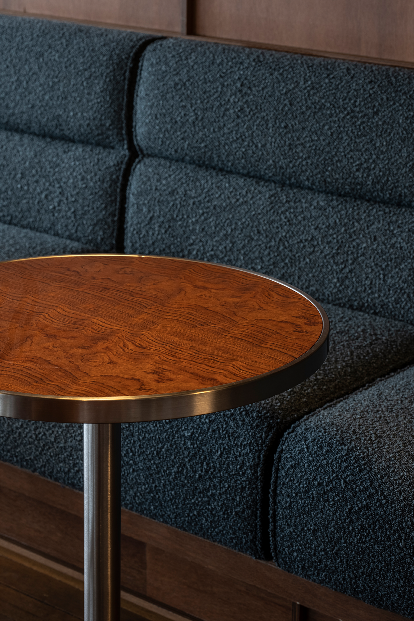 With the combination of the characteristics of Korean furniture in the 80s and the beauty of the present, the old Baeknok Hall and the modern fritz are contained in one space. From table legs that can be easily seen at home as a child, chairs that can be used as a group in the town hall, and dark green leather sofa as seen in the old reception room. It is familiar, but it newly expresses the space where the 80s and the present Korea intersect.
