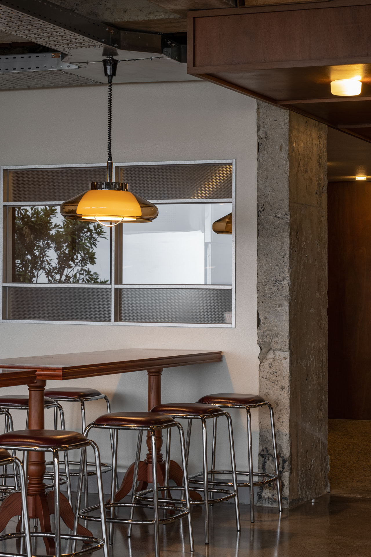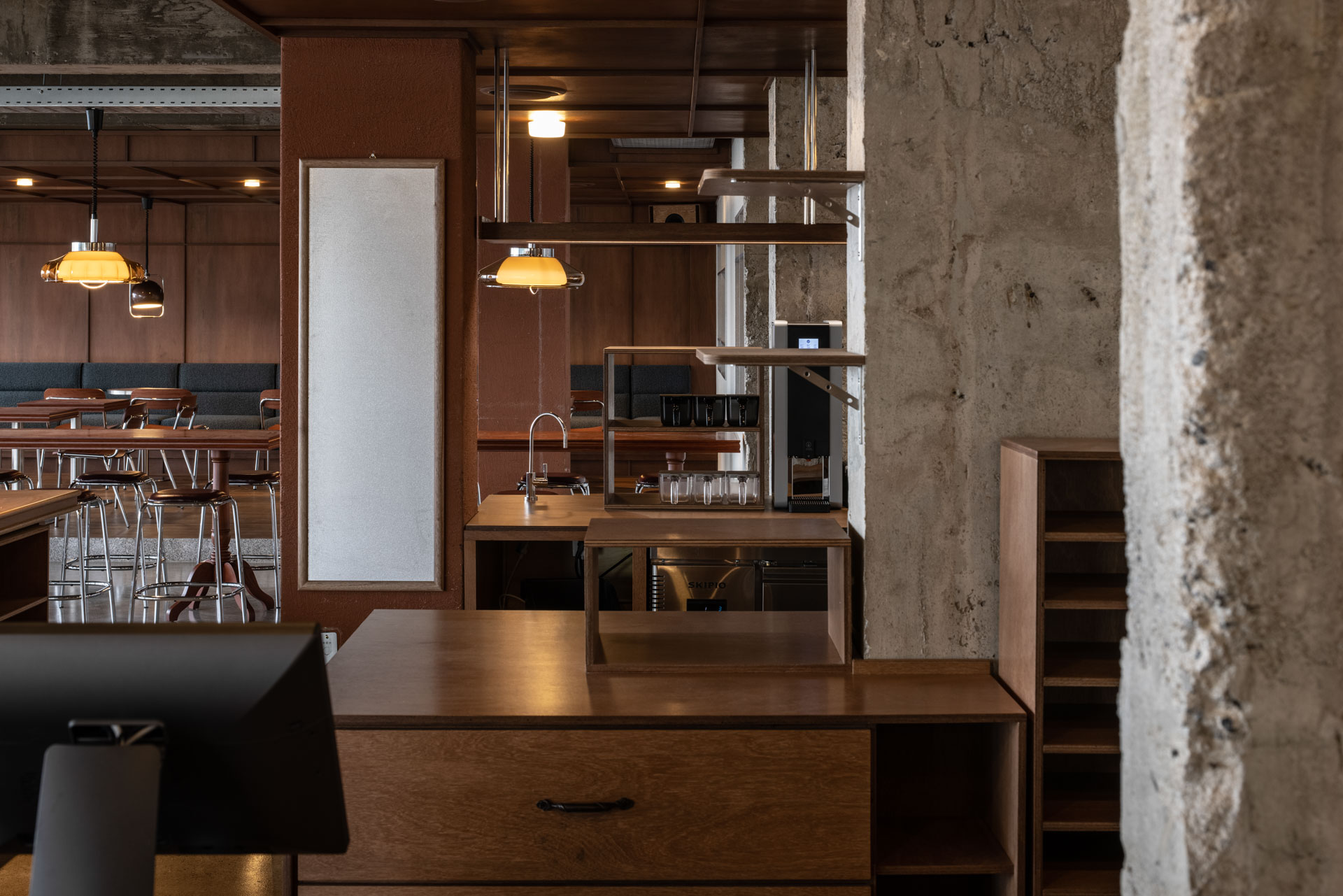 한국 근현대의 가구의 특징과 현재가 어우러져, 오래된 백록회관과 현대의 프릳츠를 한공간에 담겼다. 어릴적 집에서 쉽게 볼수있는 테이블 다리, 마을 회관에서 단체로 쓸법한 의자, 접견실의 진녹색 가죽소파까지. 익숙하지만 새롭게 80년대의 한국과 현재가 교차하는 공간을 표현하고있다.