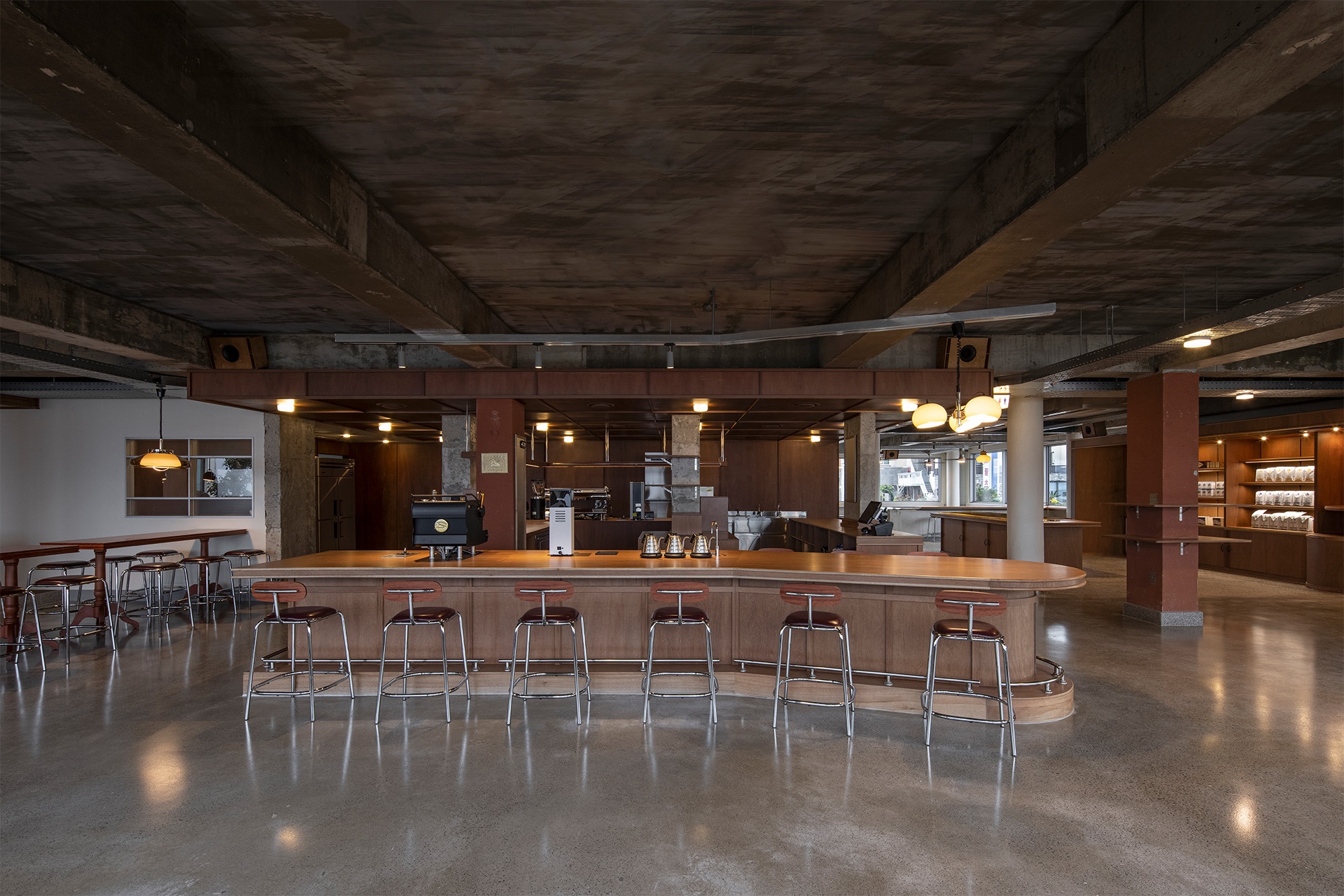 The iconic blue tiles and bricks of the Baeknok Hall still represent Fritz Seongsan. The brass casting with Fritz's logo is naturally embedded on the floor of the Baeknok Hall as if it had always been there. The history of the space "a restaurant that has long been used as a community of local residents' ' and Fritz's identity as "a community of engineers who make Korean coffee and bread" will combine in one place to create a unique depth of space.
