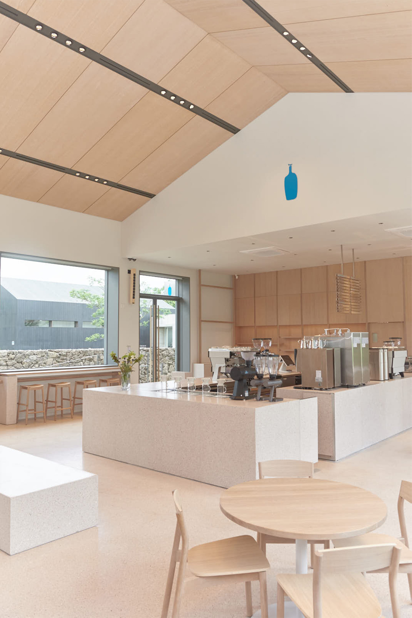 In the Blue Bottle Jeju project, we endeavored to articulate the essence of Jeju village's traditions through the embodiment of the concepts of Jeongnang and Pongnang within the space.| COMPLETION DATE | 2021 |