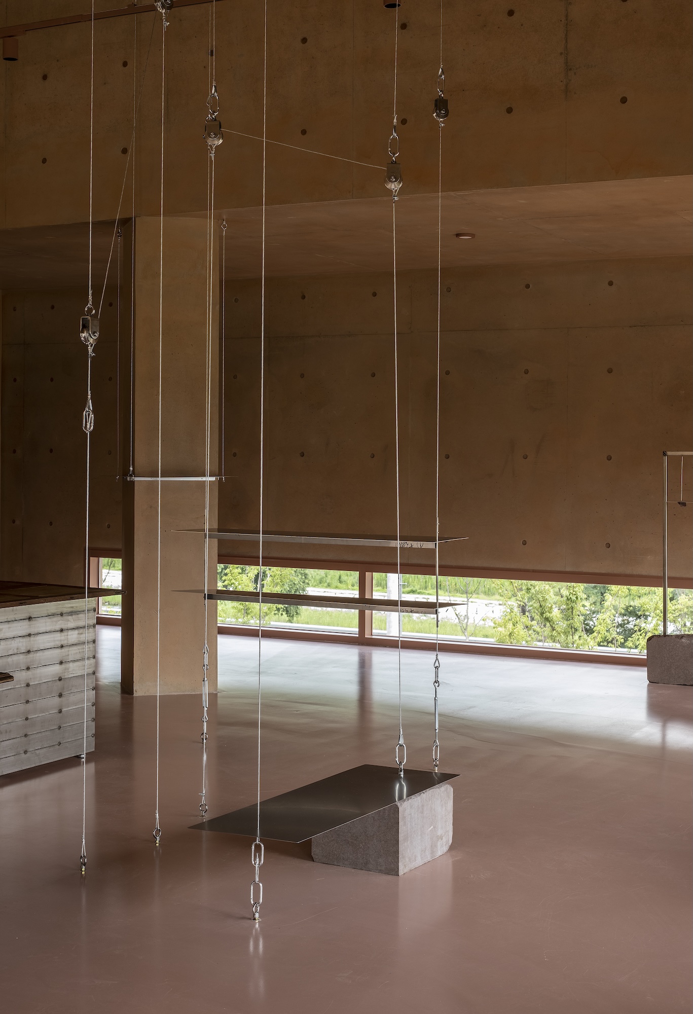 For the internal store, we designed fixtures for both display and storage, featuring ceiling-mounted wires that enable flexible and versatile arrangements.