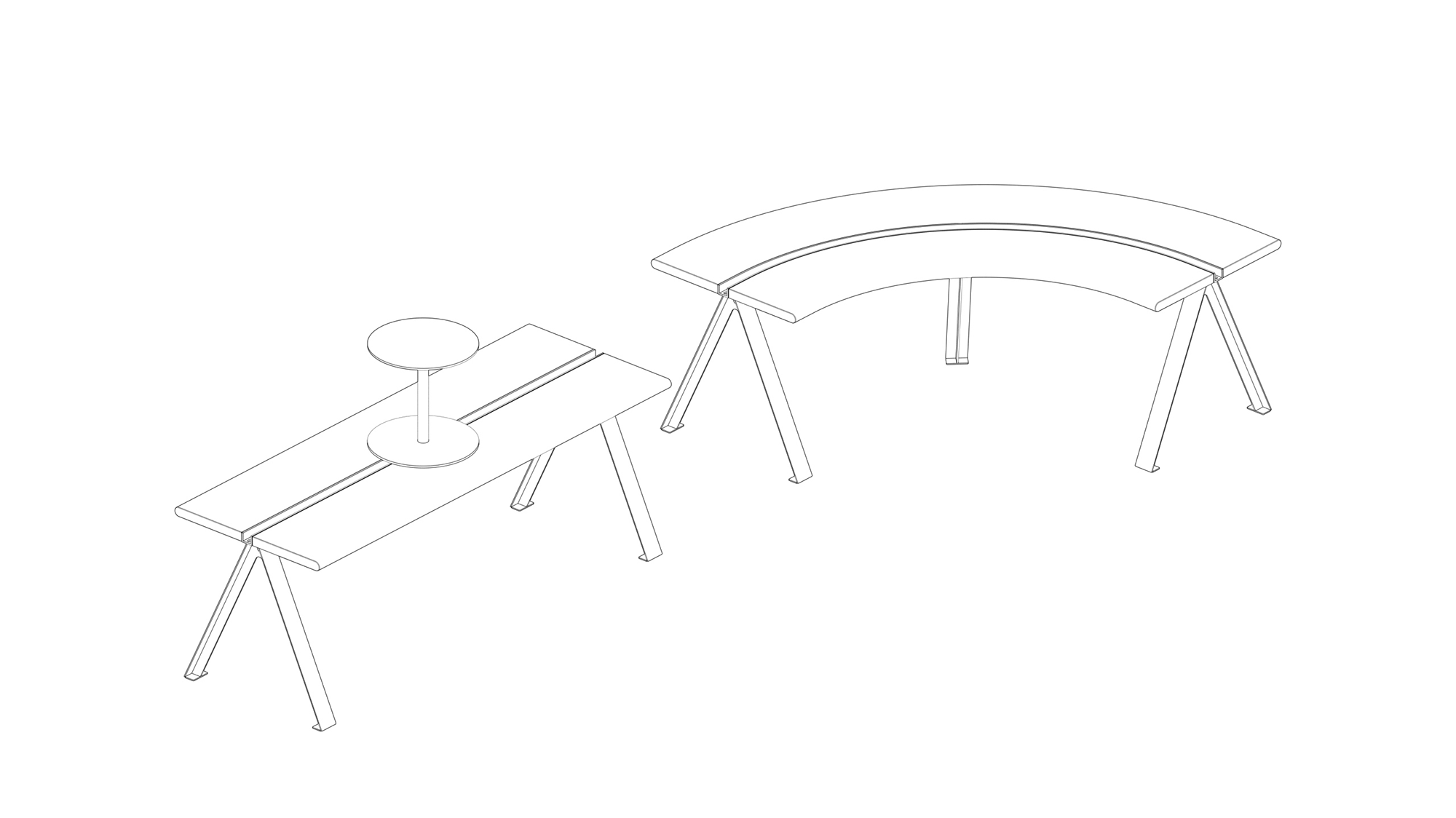 파비 벤치는 중앙의 라인 디테일이 특징인 제품으로 이를 통해 제품들을 연결하거나 사이드 테이블 액세서리를 더해 사용할 수 있게 디자인되었습니다. 라인과 커브 타입의 모듈을 조합하여 다양한 구성을 만들 수 있어 라운지 공간 같은 공용 공간에 적합합니다.