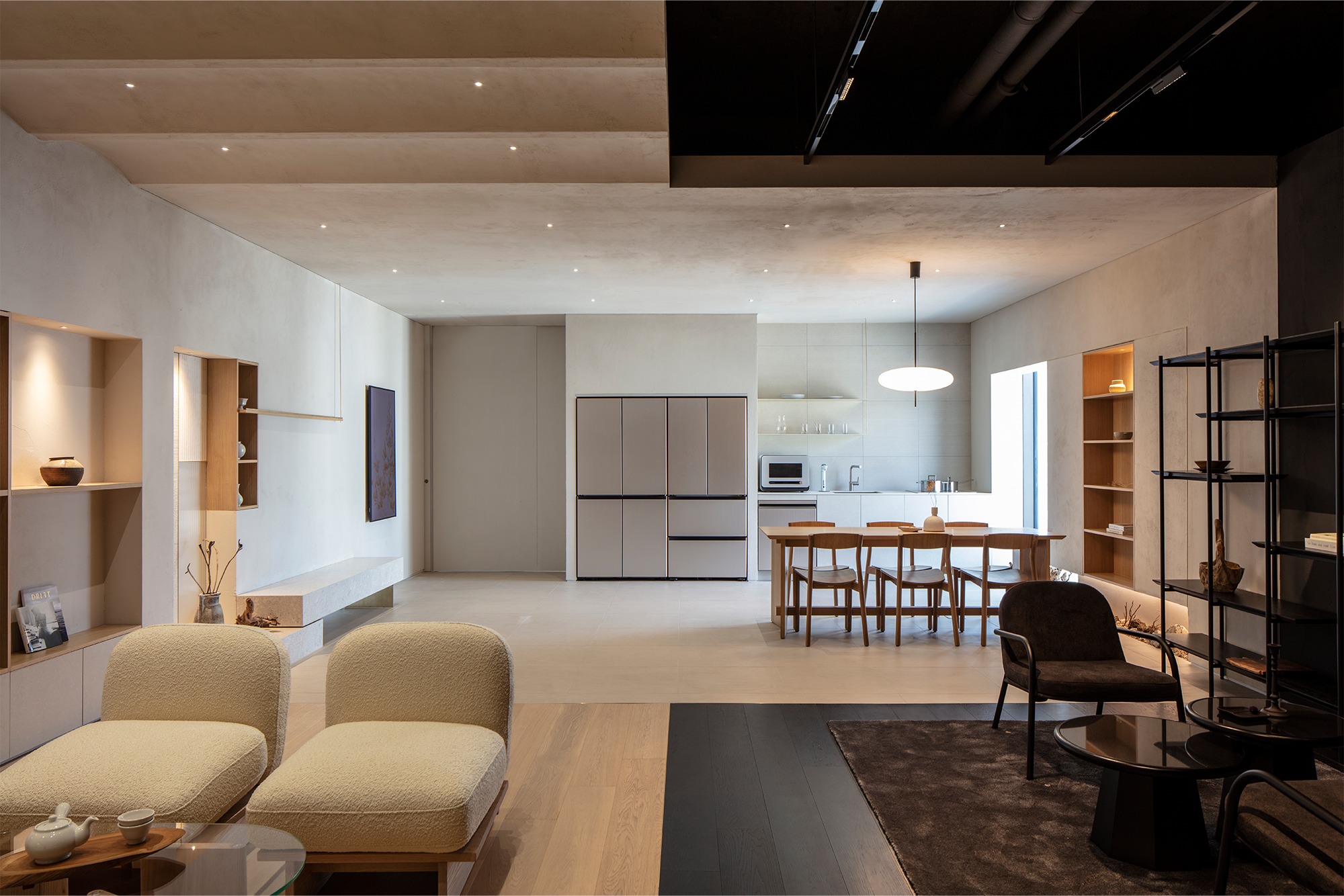 Samsung Dacor House's Infinite Zone is designed with the concept of the 'Blended Floor,' symbolizing the connection between space and time, using morning and evening as our inspiration.