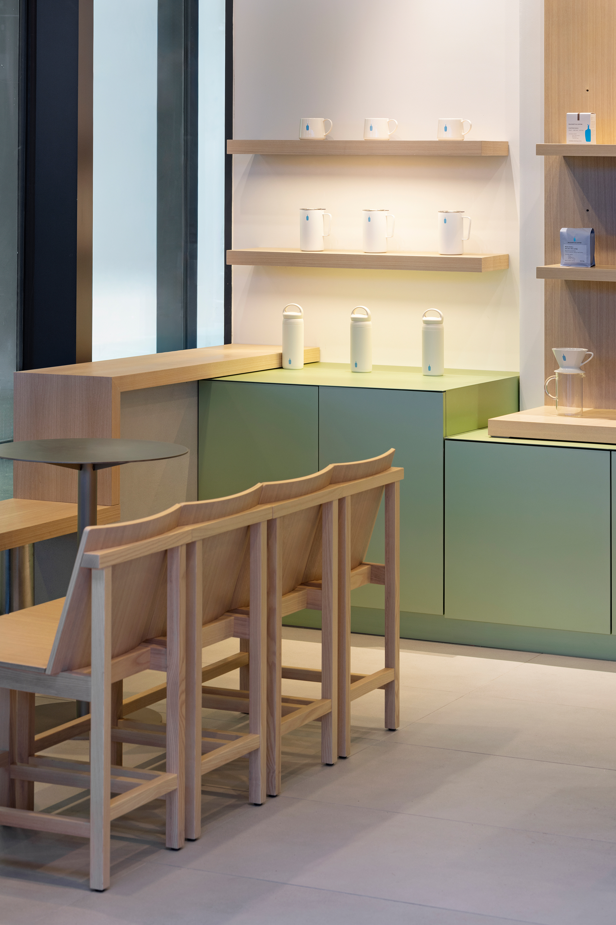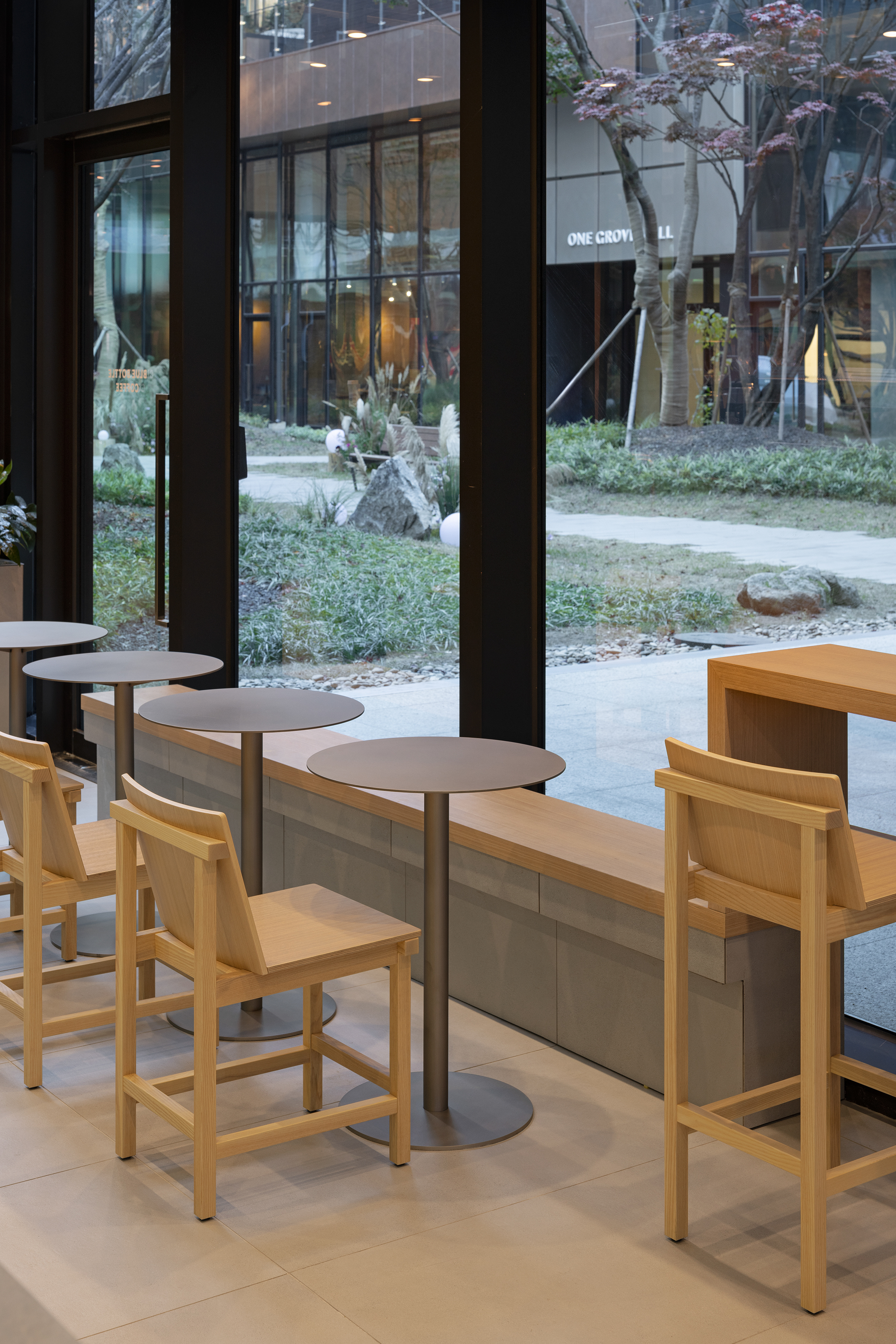 Our design focused on the structure and form of a ‘naruteo’ , a space where people briefly gather and disperse. This concept was reinterpreted and applied to both the architecture and furnishings. The unified language, completed based on function, organically shapes the overall flow of the space as its elements harmonize seamlessly.| CLIENT | BLUE BOTTLE COFFEE |