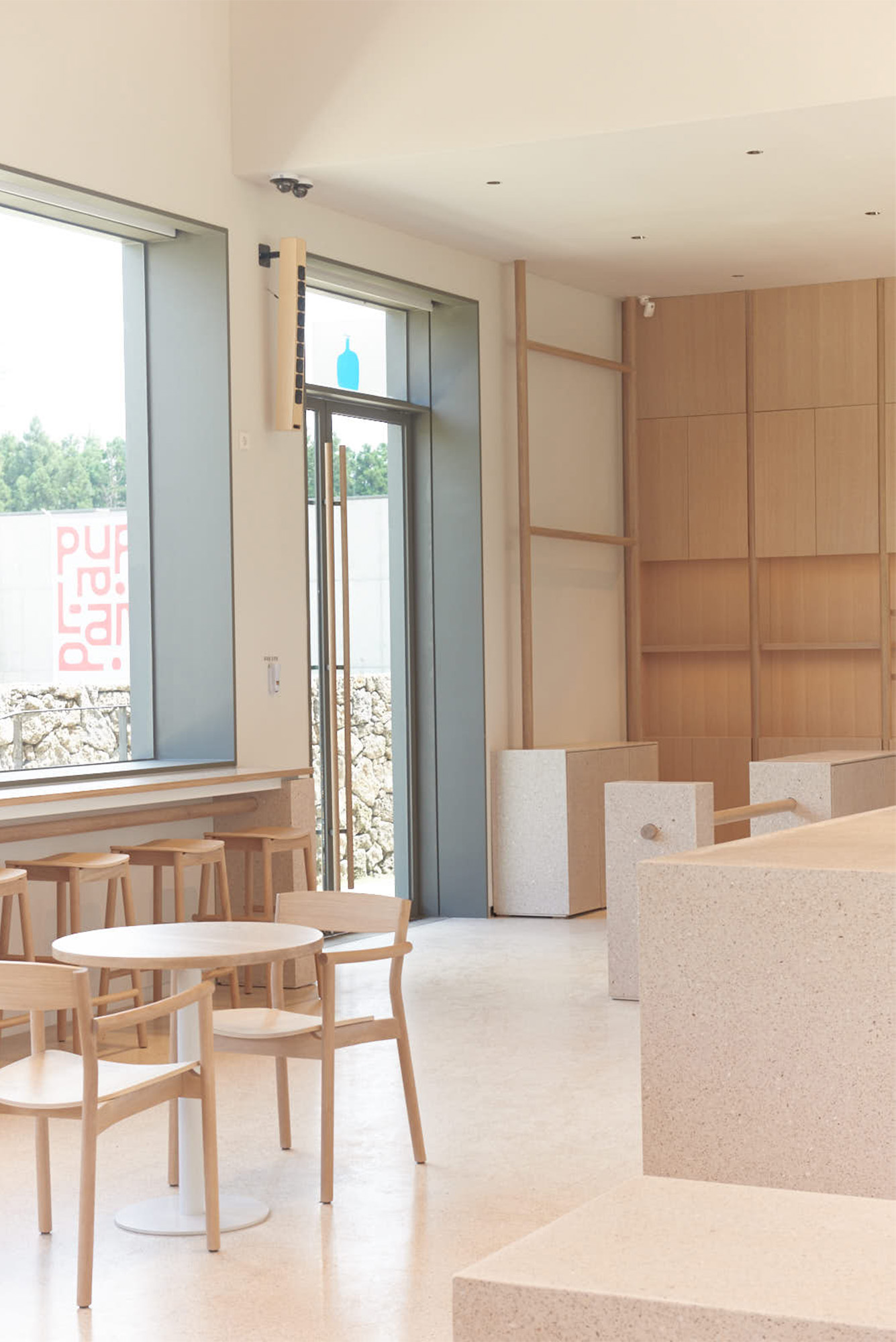 In the Blue Bottle Jeju project, we endeavored to articulate the essence of Jeju village's traditions through the embodiment of the concepts of Jeongnang and Pongnang within the space.| COMPLETION DATE | 2021 |