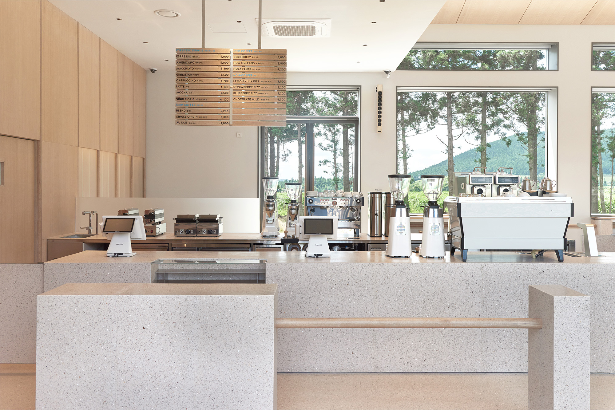 Jung-Nang represents Jeju islands ‘Sam-Mu’(삼무,三無) which is a traditional philosophy that means there are no thieves or beggars in our neighbourhood, therefore no front gate.’ It also has a strong context of ‘Everyone is welcome’. Intrigued by Jeju’s iconic object: ‘Jung-Nang’, it’s structural point is reinterpreted and applied to the entire space and furniture design of Blue Bottle. And little ‘Pong-Nangs’ in the cafe floor can provide not only a good rest, but also make efficient customers’ traffic control possible.
