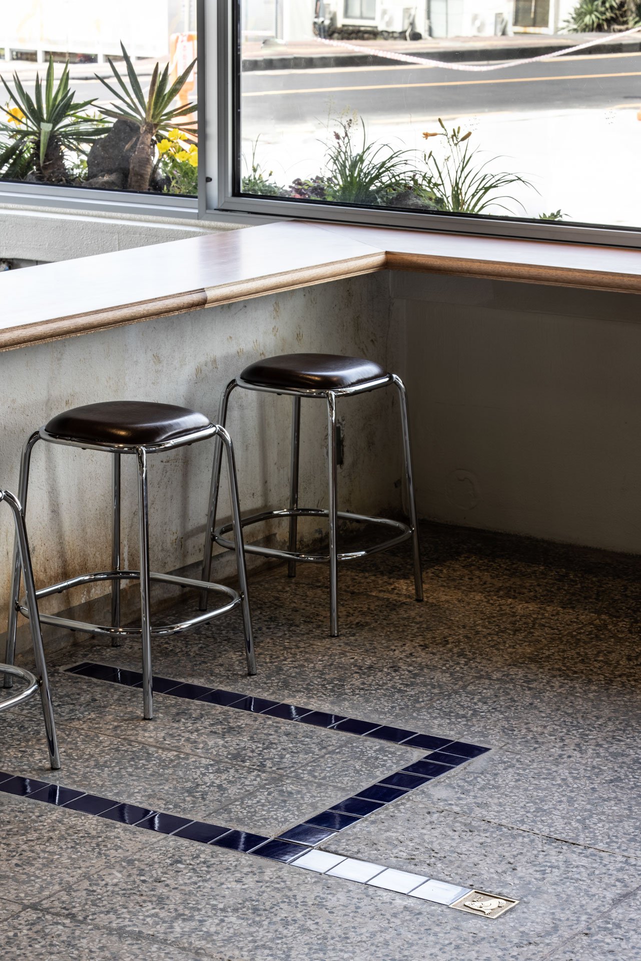 성산 일출봉이 눈 앞에 펼쳐진 프릳츠의 성산점은 한때 ‘백록회관’이라는 횟집이 자리했던 공간이다. 당시의 수족관에는 이제 동네에 자생하는 들꽃들이 모여 주변의 자연과 조화를 이룬다.