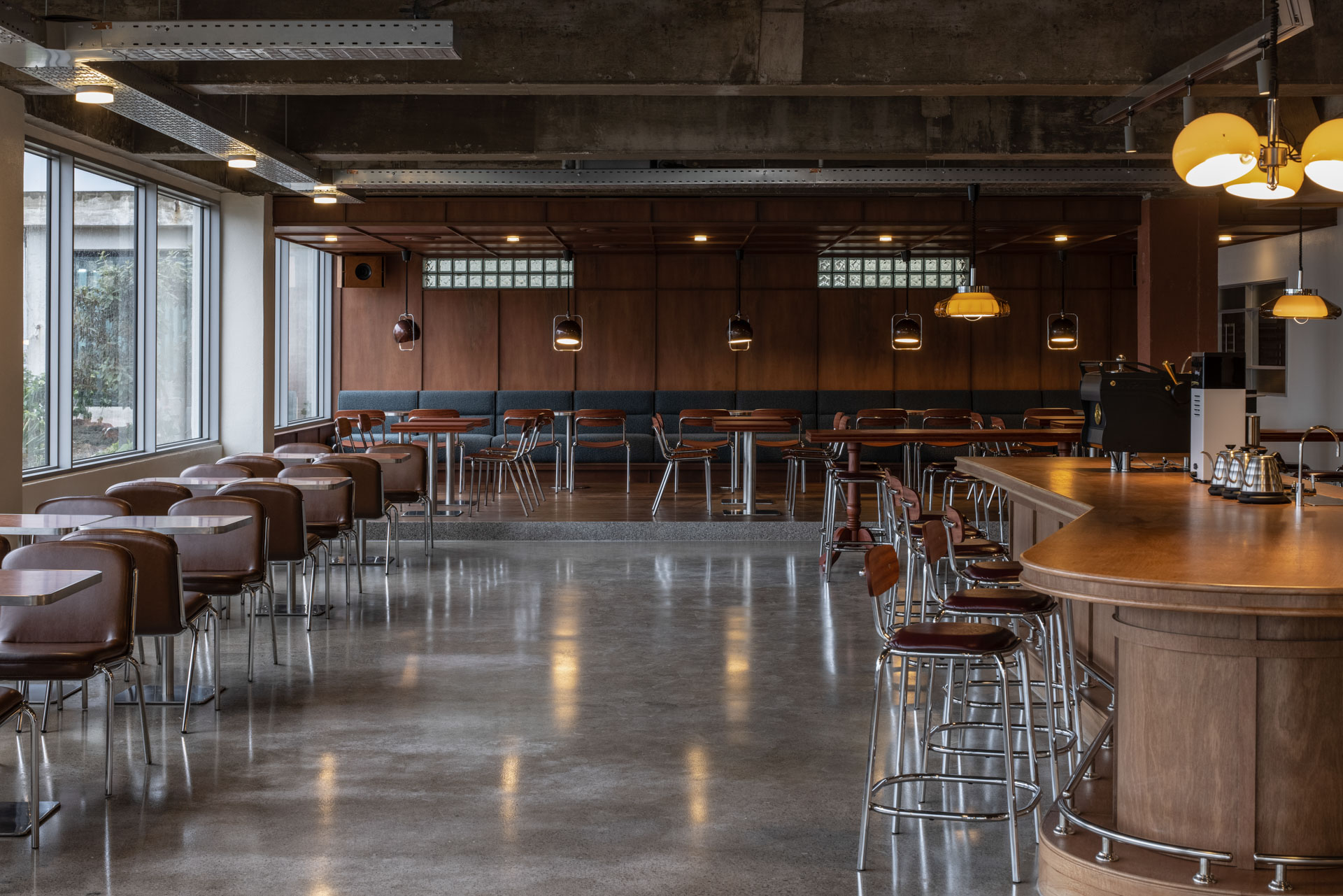 The iconic blue tiles and bricks of the Baeknok Hall still represent Fritz Seongsan. The brass casting with Fritz's logo is naturally embedded on the floor of the Baeknok Hall as if it had always been there. The history of the space "a restaurant that has long been used as a community of local residents' ' and Fritz's identity as "a community of engineers who make Korean coffee and bread" will combine in one place to create a unique depth of space.