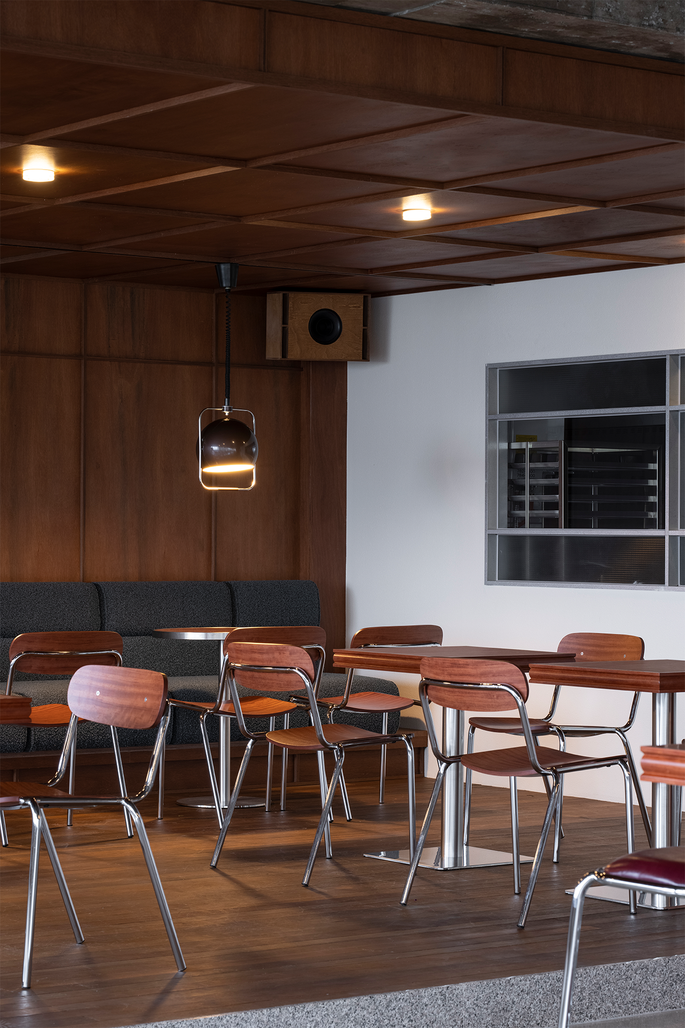 한국 근현대의 가구의 특징과 현재가 어우러져, 오래된 백록회관과 현대의 프릳츠를 한공간에 담겼다. 어릴적 집에서 쉽게 볼수있는 테이블 다리, 마을 회관에서 단체로 쓸법한 의자, 접견실의 진녹색 가죽소파까지. 익숙하지만 새롭게 80년대의 한국과 현재가 교차하는 공간을 표현하고있다.